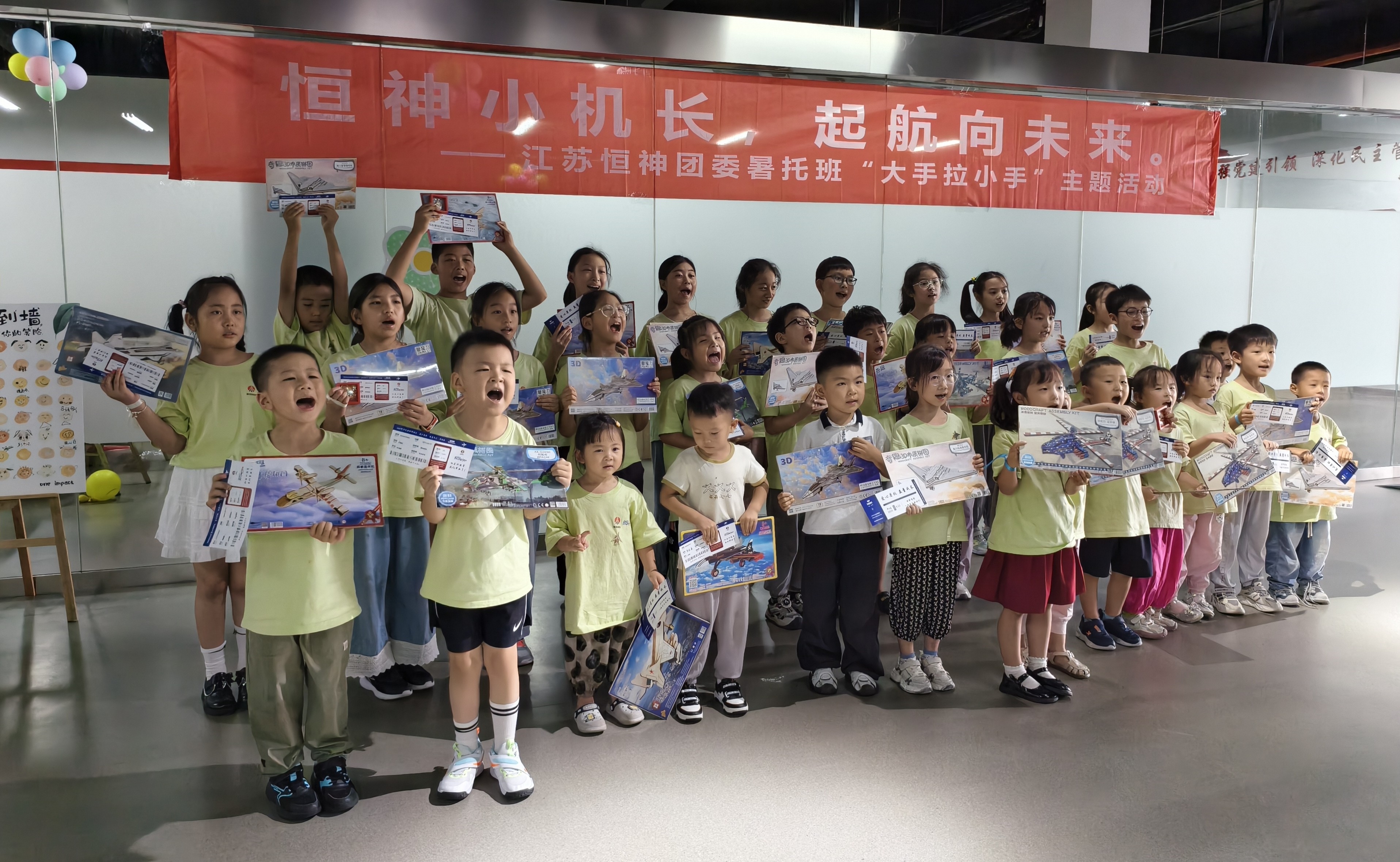 8月12日下午,恒神股份愛心暑托班的活動場地變身歡樂航空港,約50名職工子女化身 “恒神小機長”,在團委青年們的帶領和陪伴下,開啟了一場充滿歡笑與成長的航空主題奇妙之旅。這場以 “恒神小機長?起航向未來” 為主題的趣味游戲活動,讓孩子們在輕松愉快的游戲中收獲了知識、初步建立了團隊互助協作的觀念。開場破冰:舞蹈牽情誼,小隊齊集結隨著歡快的音樂旋律響起,活動正式拉開帷幕。5名團委青年與孩子們手拉手圍成圈,跟著節(jié)奏蹦跳旋轉,原本有些靦腆的小朋友們很快被活潑的氛圍感染,大廳里瞬間充滿了銀鈴般的笑聲。這場破冰舞蹈就像一根無形的線,迅速拉近了青年志愿者與孩子們的距離。在簡要的自我介紹后,大家通過抽取彩色手環(huán),分成了紅、黃、藍、綠、白五支小隊,展開了一場場趣味比拼。趣味闖關:航空主題游戲里的知識與協作折紙飛機環(huán)節(jié)迅速點燃了孩子們的激情。大家拿著 A4 紙,跟著領隊老師學習折疊技巧,有的還別出心裁地畫上笑臉和花紋。“三、二、一,起飛!” 當數十架紙飛機穿過 “書架圓環(huán)” 時,大廳里爆發(fā)出陣陣歡呼。“我是拼圖小能手” 環(huán)節(jié)堪稱對 “速度與協作” 的考驗。當飛機拼圖被分發(fā)到各隊時,孩子們立刻圍坐在一起,七手八腳地開始拼接。“這塊應該在這里!”“不對,看機翼的形狀!” 團委志愿者們在旁耐心引導,既不包辦代替,又及時給迷茫的小隊員們支招。最終,各支隊伍都順利完成了拼圖任務。“飛機連連看” 游戲成了記憶力大比拼。孩子們盯著倒扣的紙牌,時而蹙眉思考,時而拍手歡呼,團委志愿者們則在一旁計時鼓勁、還要熱心的小朋友不時用掌聲鼓勵加油。最終,所有孩子都贏得了木制飛機模型拼圖,獲勝隊伍的小朋友還優(yōu)先挑選了心儀的款式。溫情收尾:徽章與機票見證成長,愛與理念扎根心間活動尾聲,每位小飛行員都領到了閃亮的 “恒神小機長” 徽章,驕傲地別在胸前。當印有每個孩子名字的 “結業(yè)機票” 被鄭重頒發(fā)時,不少小朋友舉著機票和模型向志愿者們開心地道謝。本次活動旨在讓職工子女在歡樂中感受航空精神,同時通過青年志愿者的陪伴,傳遞企業(yè)對員工家庭的關懷。這場持續(xù)兩小時的活動,像一根堅韌的 “情感碳纖維”,將企業(yè)、家庭與孩子緊緊相連。恒神團委的青年們用熱情與愛心,為孩子們的暑假添上了一抹明亮的色彩,也讓 “愛與未來一起飛” 的溫暖理念,深深扎根在每個人心中。